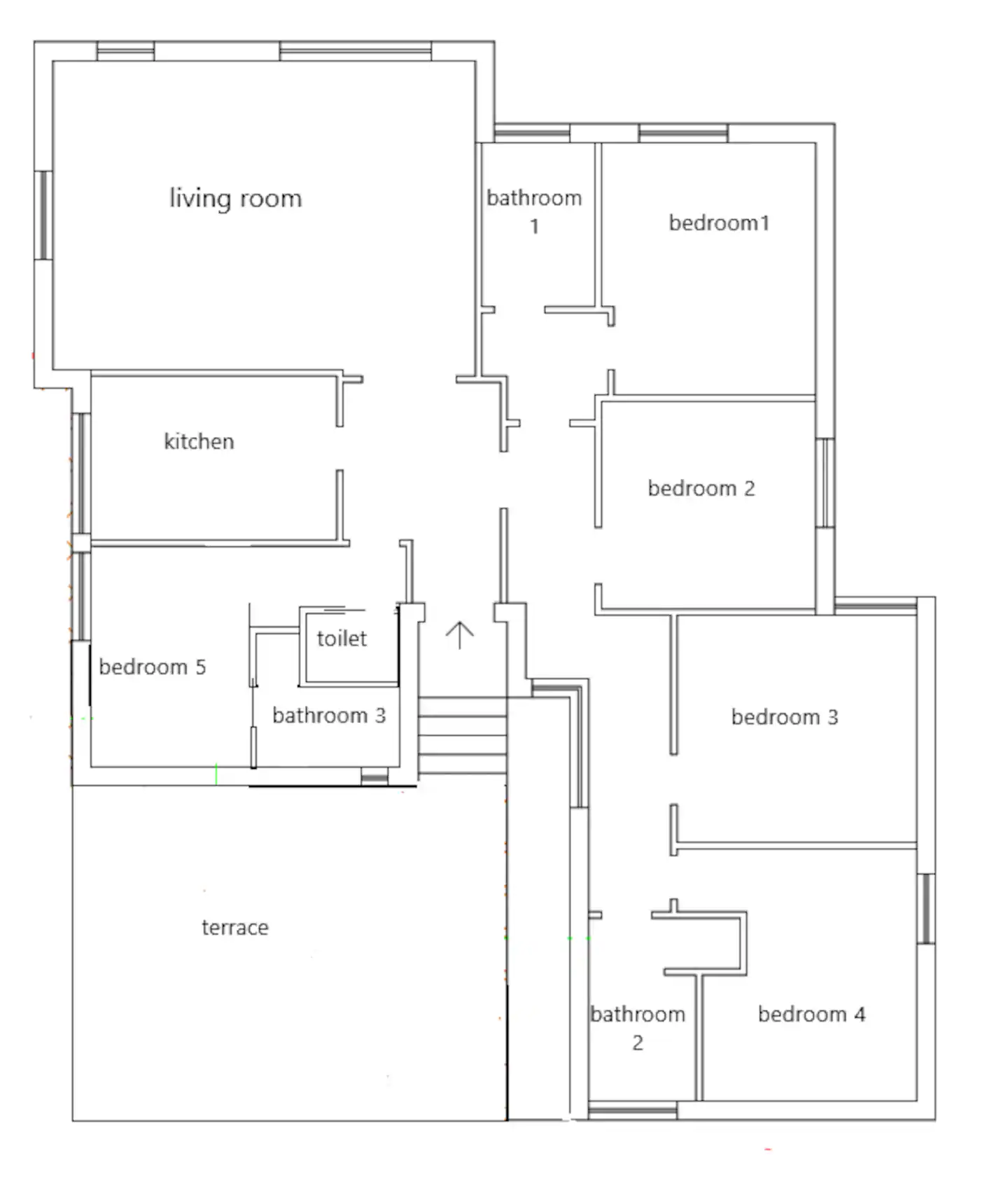 Completano la casa 3 bagni con doccia e un bagnetto con lavandino e wc.